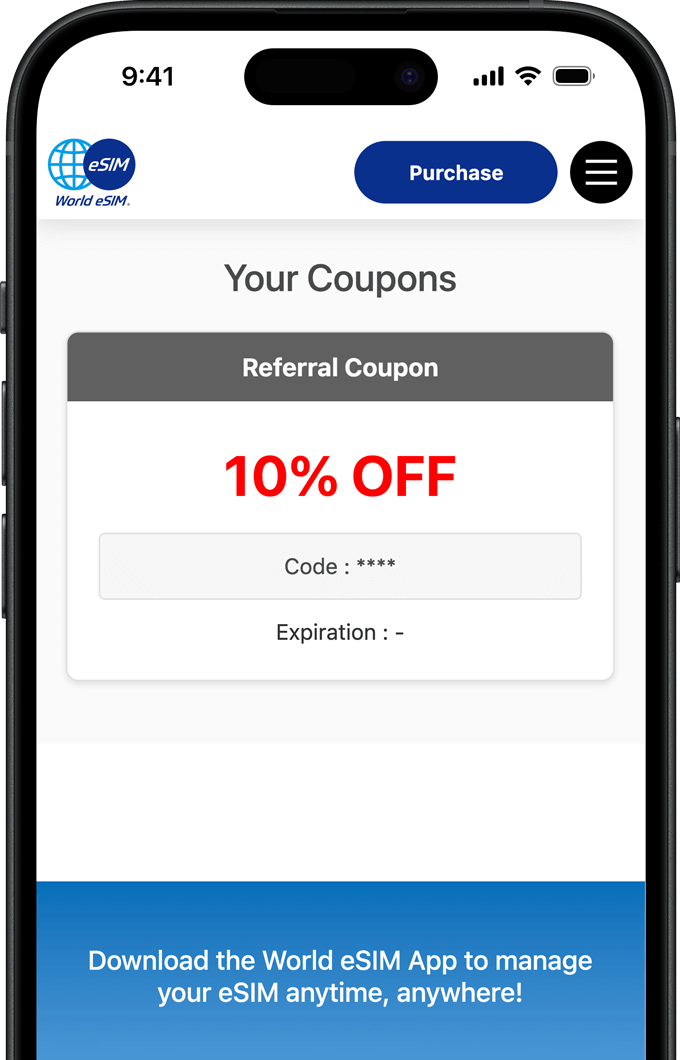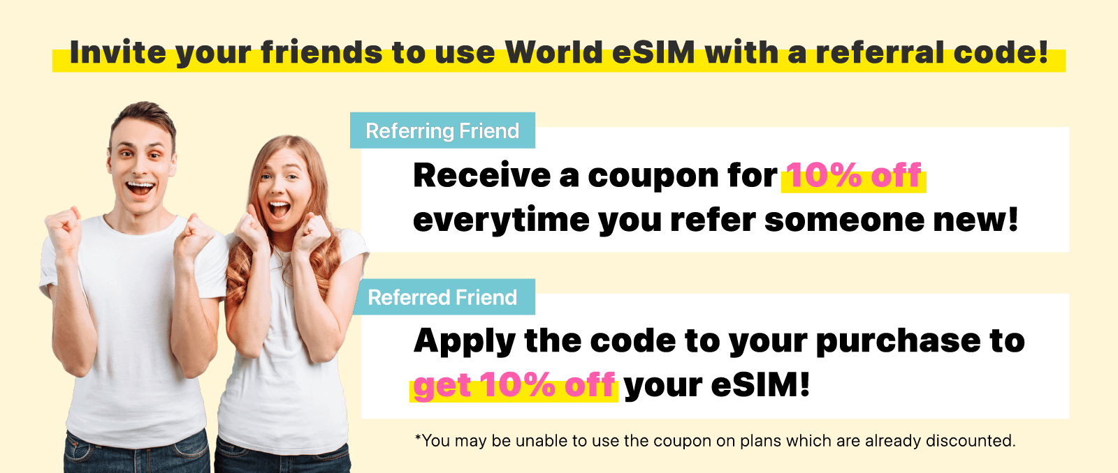 When your friend buys an eSIM, you will receive a 10% off coupon to your account.