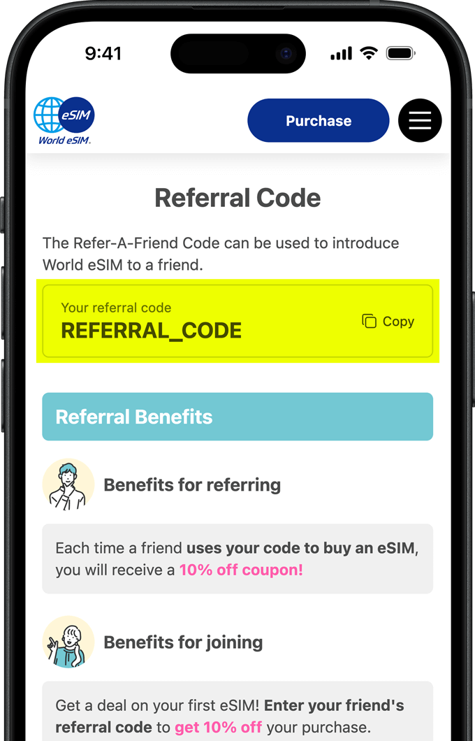 Each time a friend uses your code to buy an eSIM, you will receive a 10% off coupon!
